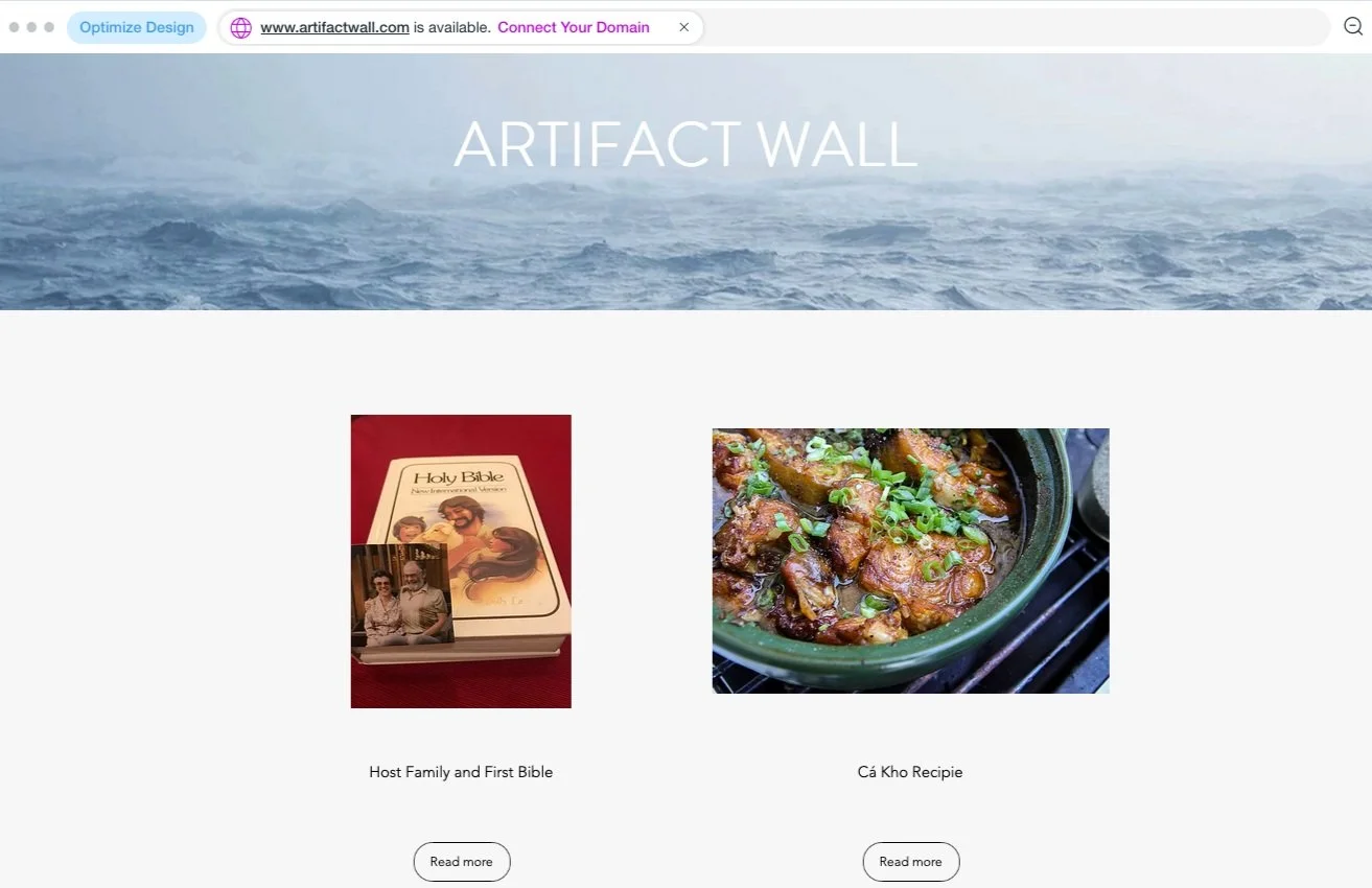 Many of our interview participants told us how encountering artifacts had helped them, or their parents begin to share their migration experiences. We developed a digital artifact wall inspired by these stories for our first functional prototype. The artifact wall consisted of images, videos, and writings provided by our existing contacts. Though this initial test's content and scope were limited, participants proved to be enthusiastic collaborators in the process. A number of them shared that they were excited to continue communicating with others once they submitted their artifact and began reaching out to friends and family members to talk about their experiences.